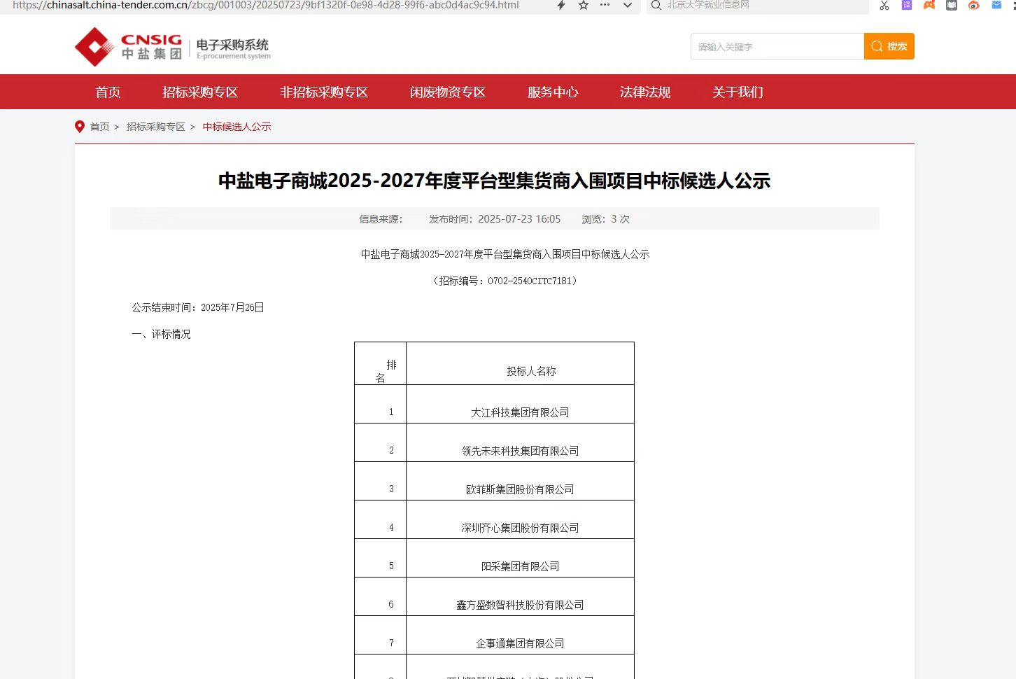 [喜报]热烈祝贺我司入围中盐电子商城2025-2027年度平台型集货商项目