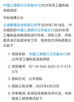 [喜报]热烈祝贺我司中标中国工商银行江苏省分行2025年员工福利品项目