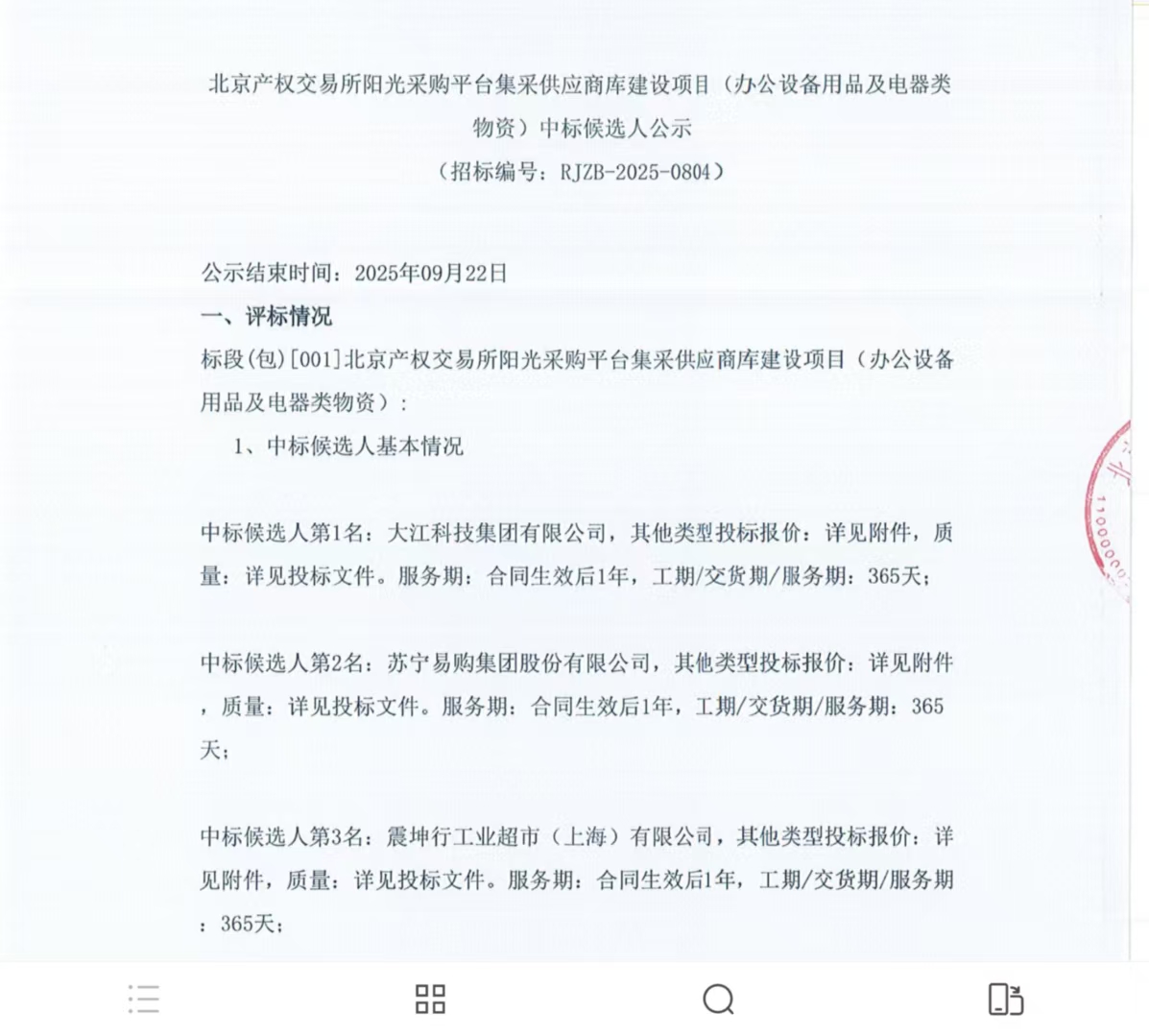 [喜报]热烈祝贺我司中标北京产权交易所阳光采购平台集采供应商库建设项目