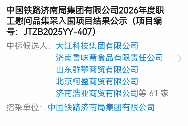 [喜报]热烈祝贺我司成功中标中国铁路济南局集团有限公司2026年度职工慰问品集采入围项目