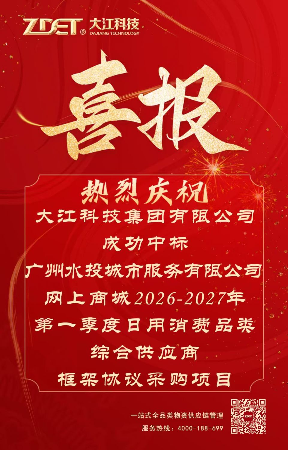 [喜报]热烈庆祝我司成功中标广州水投城市服务有限公司网上商城2026-2027年第一季度日用消费品类综合供应商框架协议采购项目