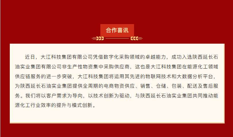 捷报丨大江科技集团有限公司成功中标陕西延长石油实业集团有限公司非生产性物资集中采购供应商入围项目