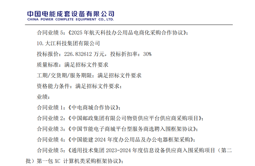捷报丨大江科技集团有限公司成功中标陕西延长石油实业集团有限公司非生产性物资集中采购供应商入围项目
